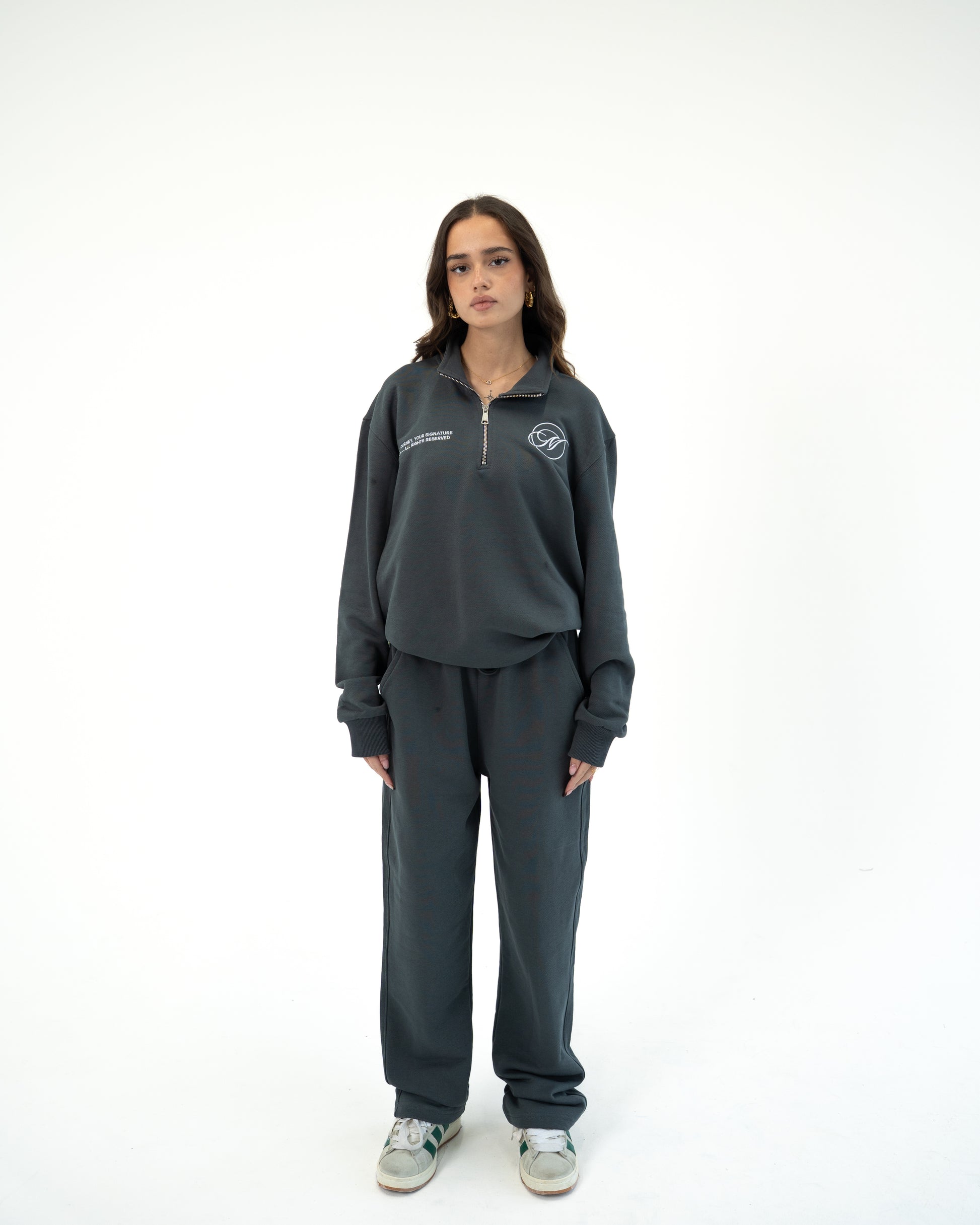 Relaxed-fit pants designed for everyday comfort and effortless style. Crafted with a soft premium feel and a clean modern silhouette, they pair perfectly with the Signature Quarter Zip or stand strong on their own.